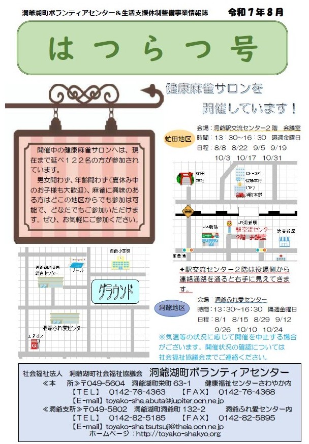 ▽本所 〒049-5604 虻田郡洞爺湖町栄町63番地1 健康福祉センターさわやか内 TEL 0142-76-4363 FAX 0142-76-4368 メールはこちらから ▽洞爺支所 〒049-5802 虻田郡洞爺湖町洞爺町132番地2 TEL 0142-82-5185 FAX 0142-82-5895