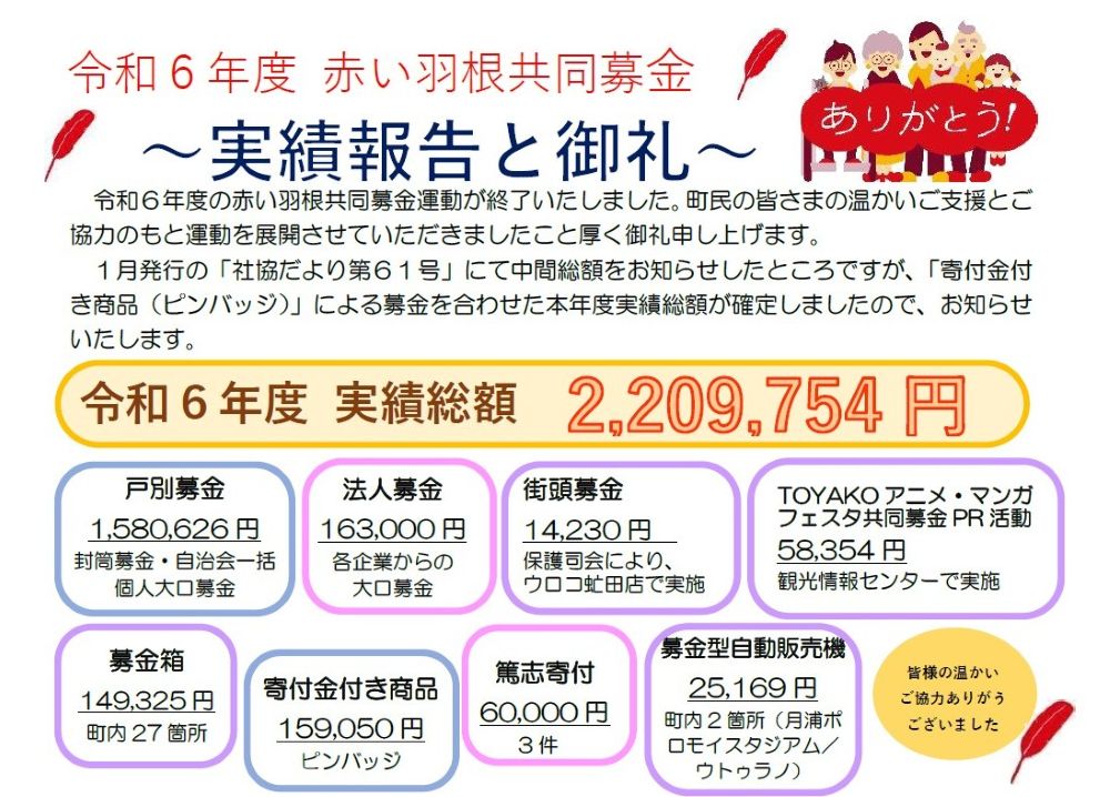 | 伊達地区保護司会洞爺湖分区 | 40,000円 | 社協だより発行 | 18,225円 |
